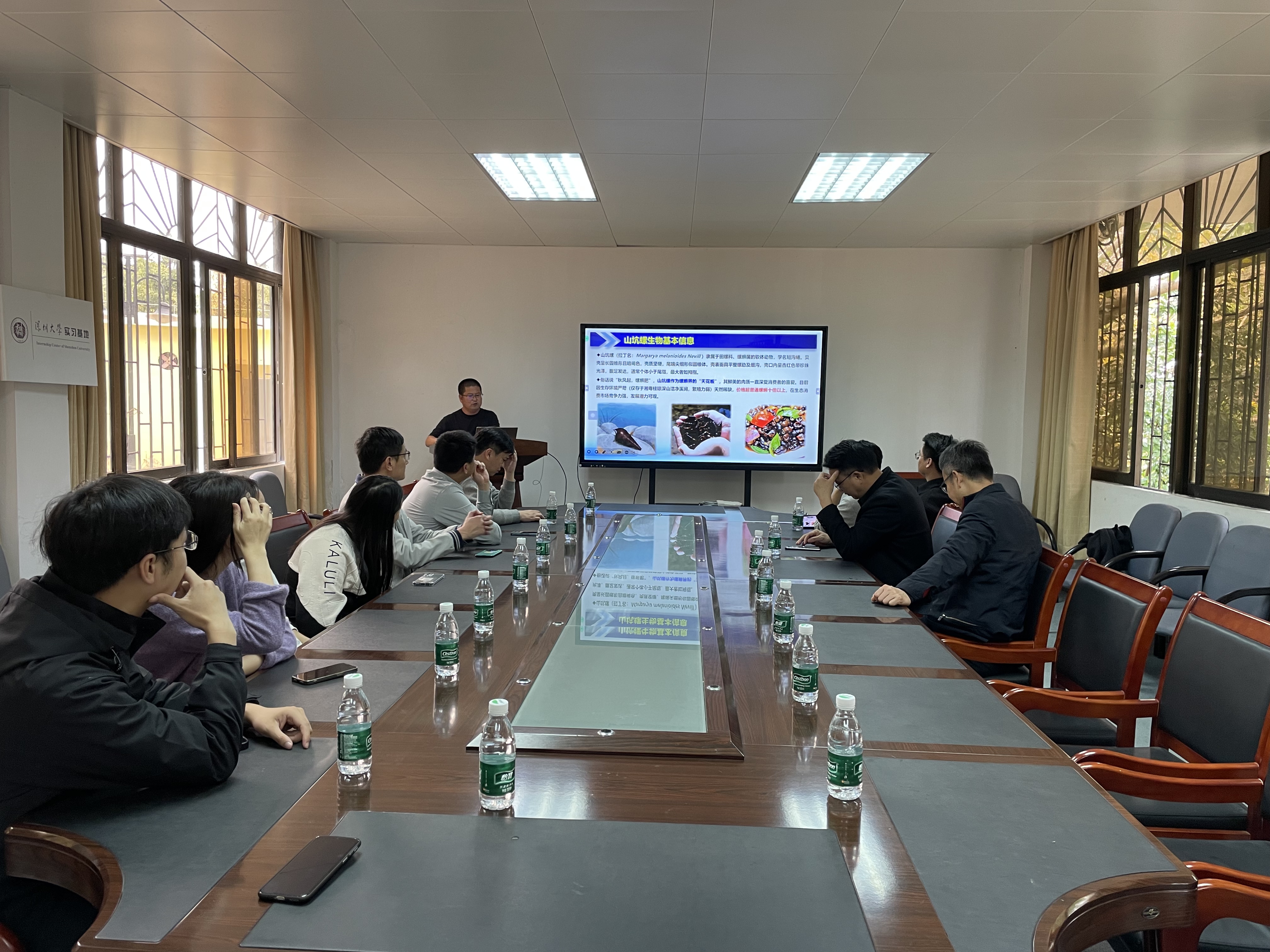 调研期间,大亚湾站副站长张跃环向调研组介绍了站在贝类全产业链开发方面的科研布局,并重点展示了大亚湾站在山坑螺种质资源收集及人工繁育关键技术攻关等领域取得的阶段性成果。目前,大亚湾站已在连南县布设山坑螺原种保育及生态养殖示范区,此次考察旨在进一步对接育种关键技术,为后续推广养殖积累经验。