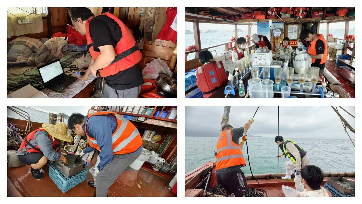 本次春季航次由李刚带队,大亚湾站工作人员及来自LMB、LTO、海洋工程中心、华南师范大学、鲁东大学等科研院所的科研人员共23人组成调查队,共同参与海上作业工作。航次在大亚湾海域12个CERN固定监测站位和5个补充监测站位,系统开展了气象、水文、化学、水质、光学、浮游生物、底栖生物及沉积物等多参数观测与样品采集工作。调查期间,全体队员克服海上复杂条件,严格按照中国生态网络调查规范完成了样品采集与数据观测,累计获取海水水质、生物及沉积物样品600余份,采集现场数据逾万条。